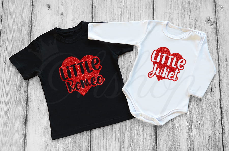Idealne na Walentynki body niemowlęce lub bluzka z nadrukiem "Little Romeo / Little Juliet". Polecamy szczególnie w czerwonym, brokatowym kolorze ;)