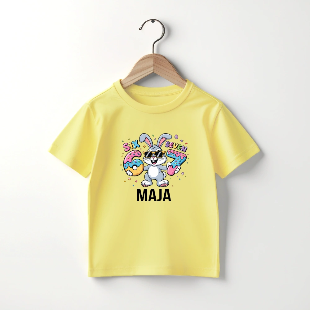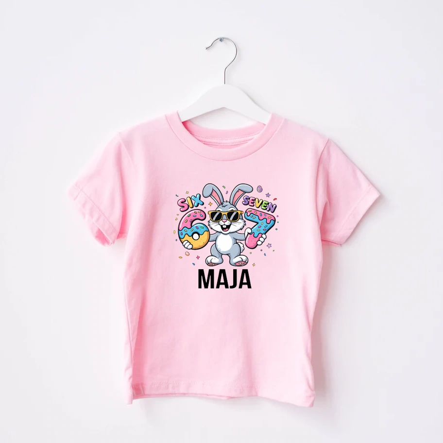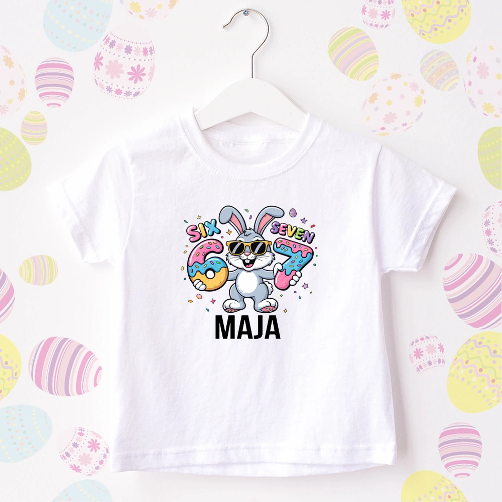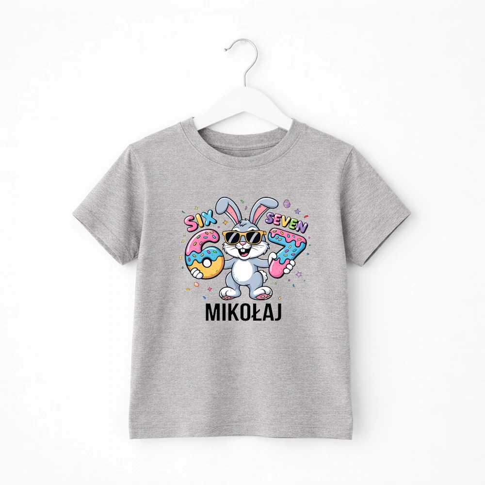 Koszulka dla dziecka z kultowym 67 i imieniem. Świetna na Wielkanoc.