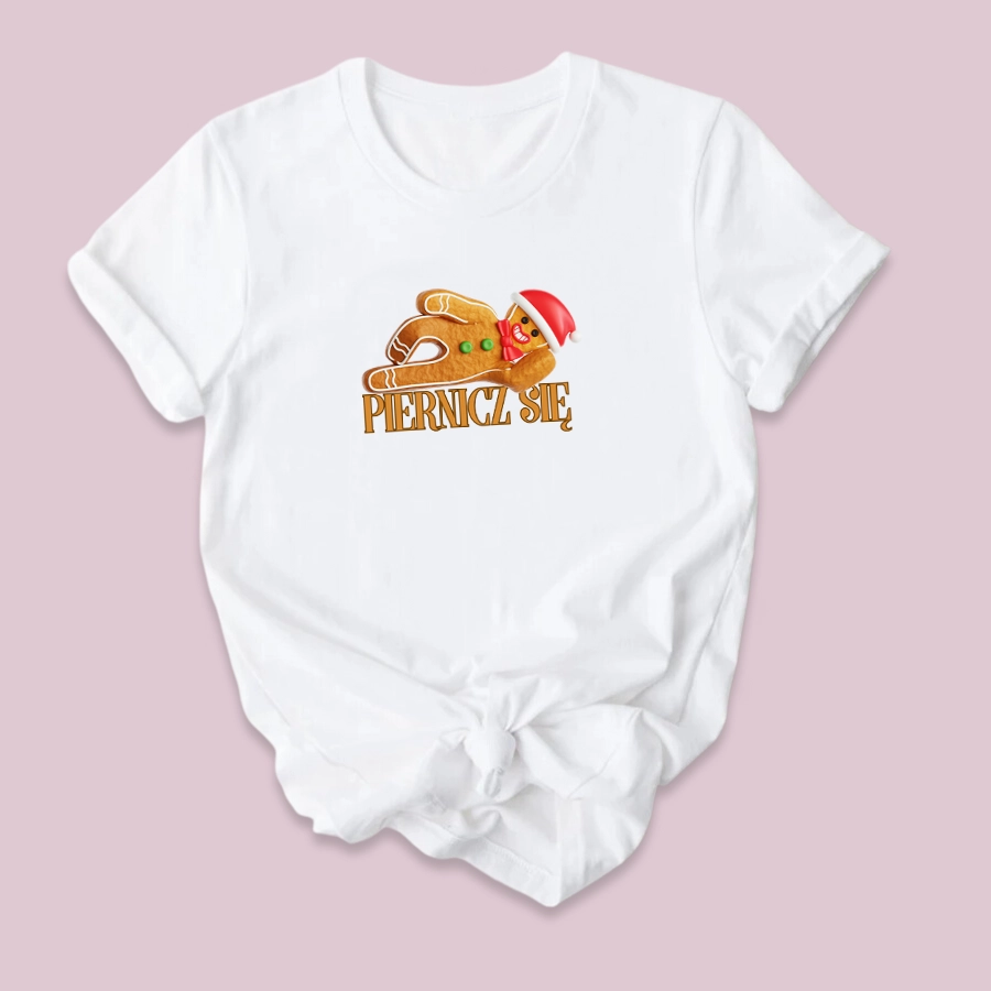 Koszulka z zabawnym, świątecznym nadrukiem - Piernicz się, idealna propozycja na prezent Mikołajkowy czy pod choinkę. Koszulka świetnie sprawdzi się, także jako stylizacja do pracy :)