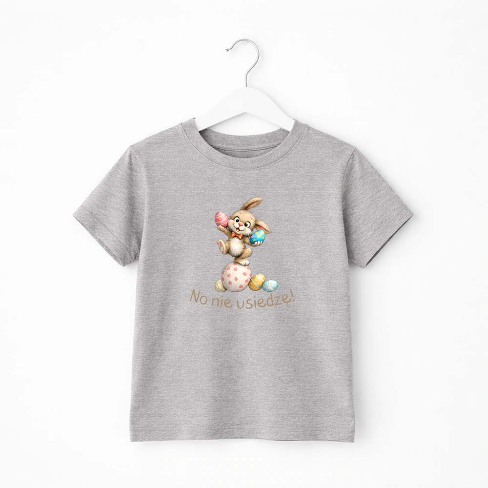 Koszulka lub body niemowlęce z wielkanocnym zajączkiem i pisankami to wesoła propozycja dla dzieci, które nie potrafią usiedzieć w miejscu. Kolorowa grafika zajączka z pisankami oraz zabawny napis " No nie usiedzę ", idealnie oddają radosny, świąteczny klimat. Koszulka świetnie sprawdzi się podczas wiosennych zabaw, świątecznych spotkać czy sesji zdjęciowej. Super na stylizację do żłobka, przedszkola czy szkoły.