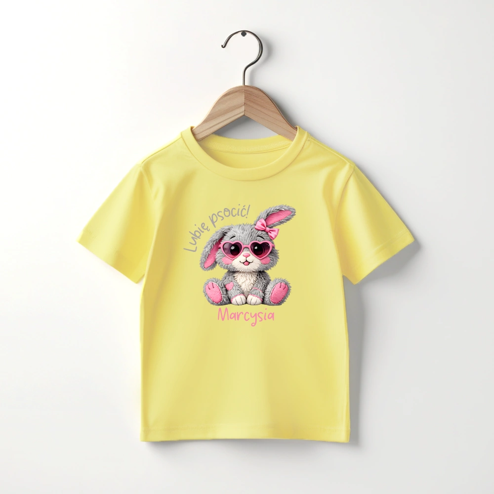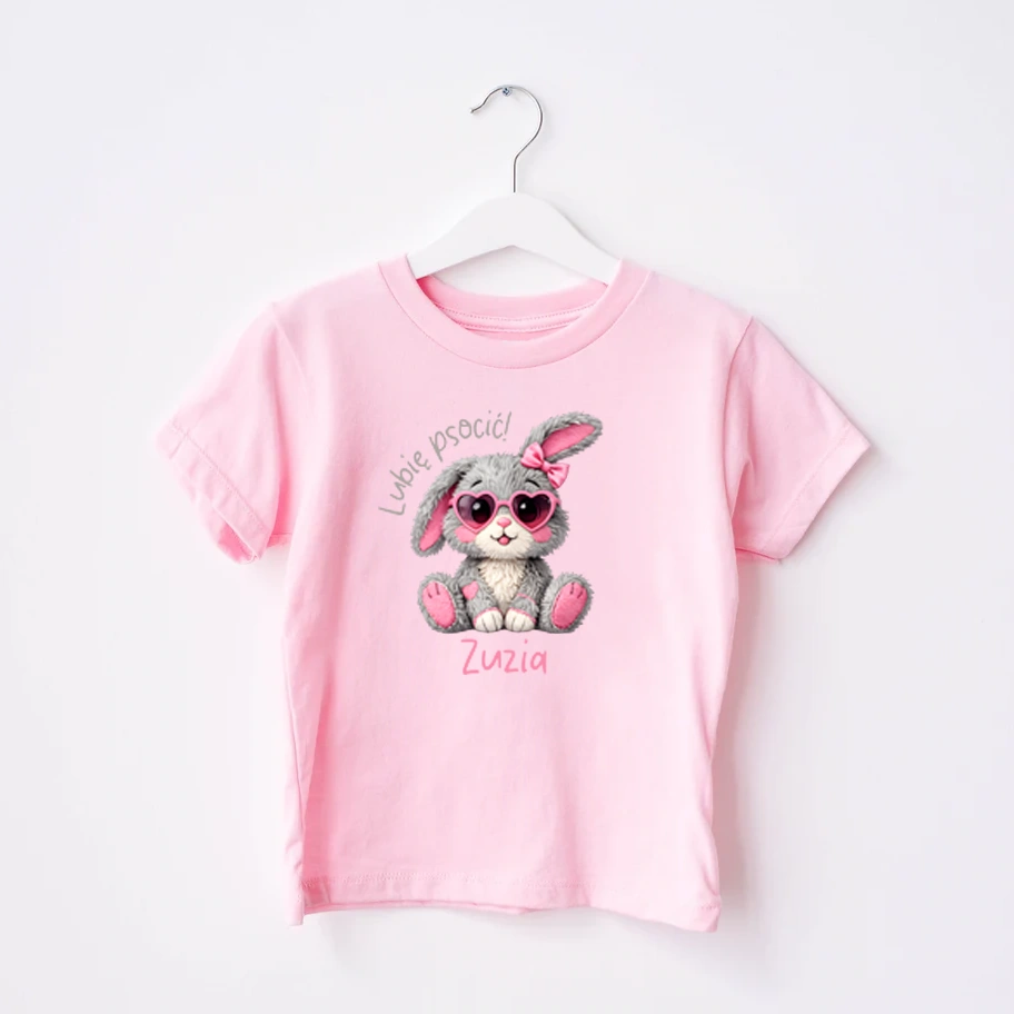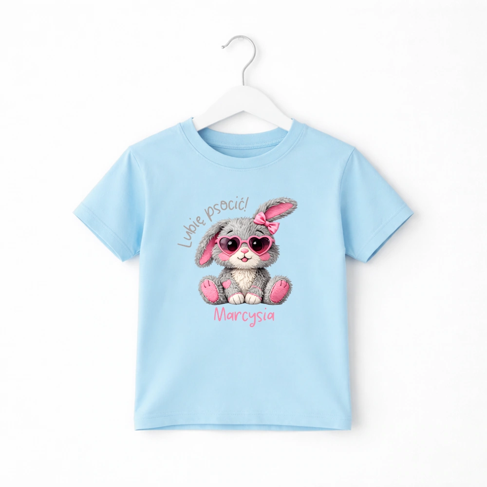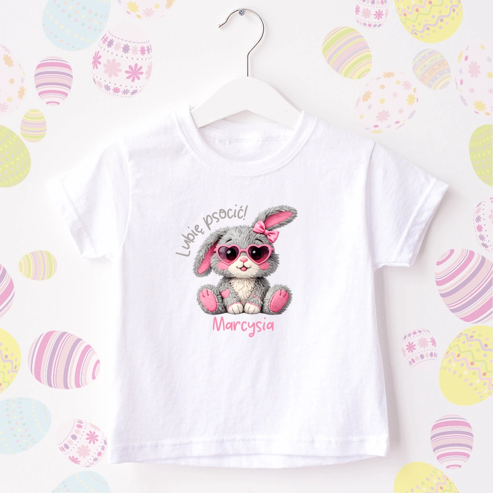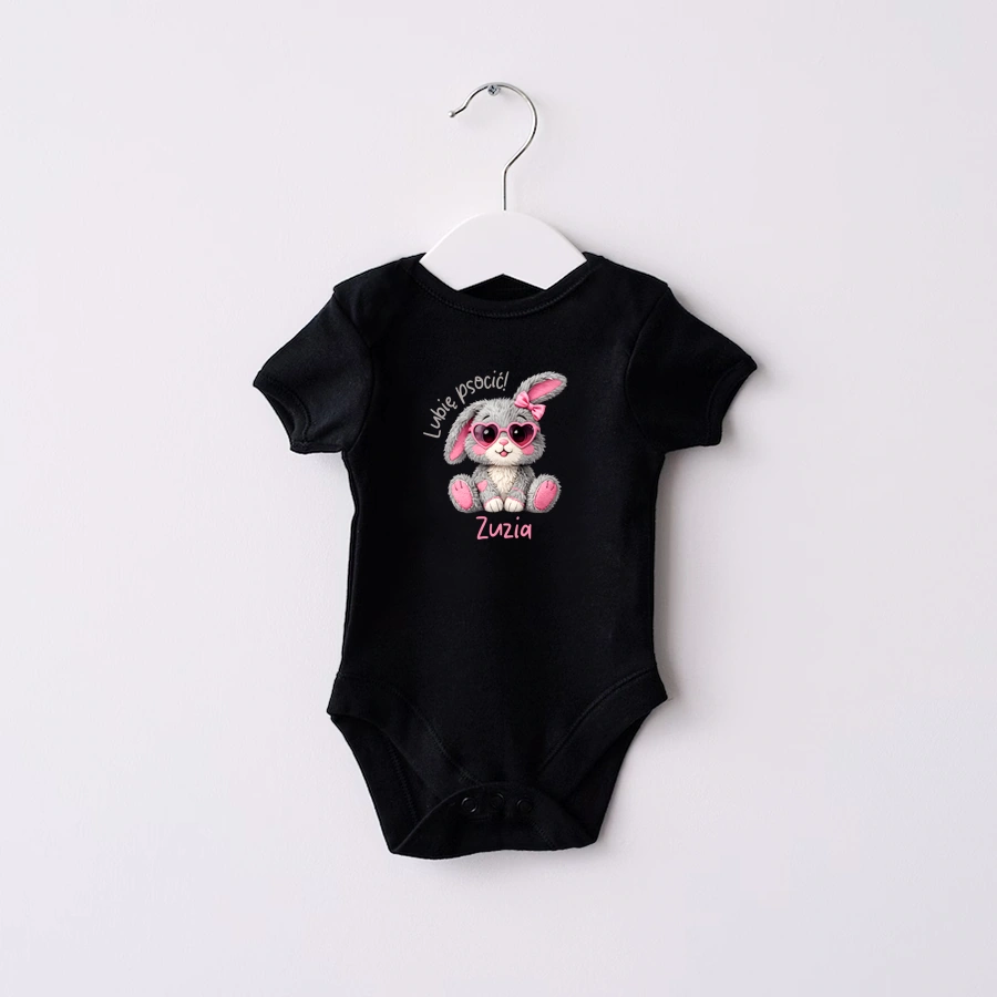 Body lub koszulka dziecięca z zajączkiem i imieniem to urocza propozycja dla małej miłośniczki psot. Kolorowy, zabawny nadruk z zajączkiem i napisem " Lubię psocić " oraz możliwością dodania imienia sprawia, że koszulka jest wyjątkowa. Propozycja idealna do żłobka, przedszkola czy szkoły, na wielkanocne rodzinne spotkania czy poszukiwanie pisanek.