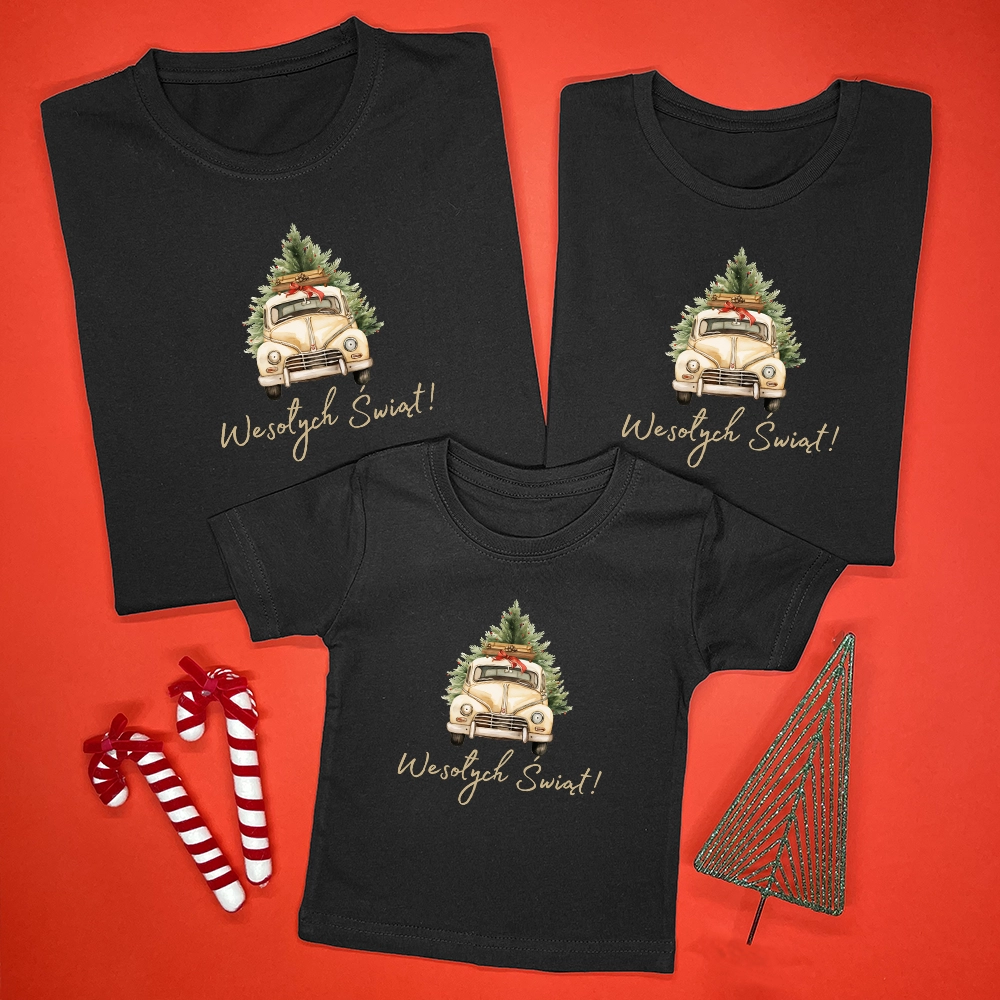Komplet świątecznych koszulek 2+1 Pickup Wesołych Świąt