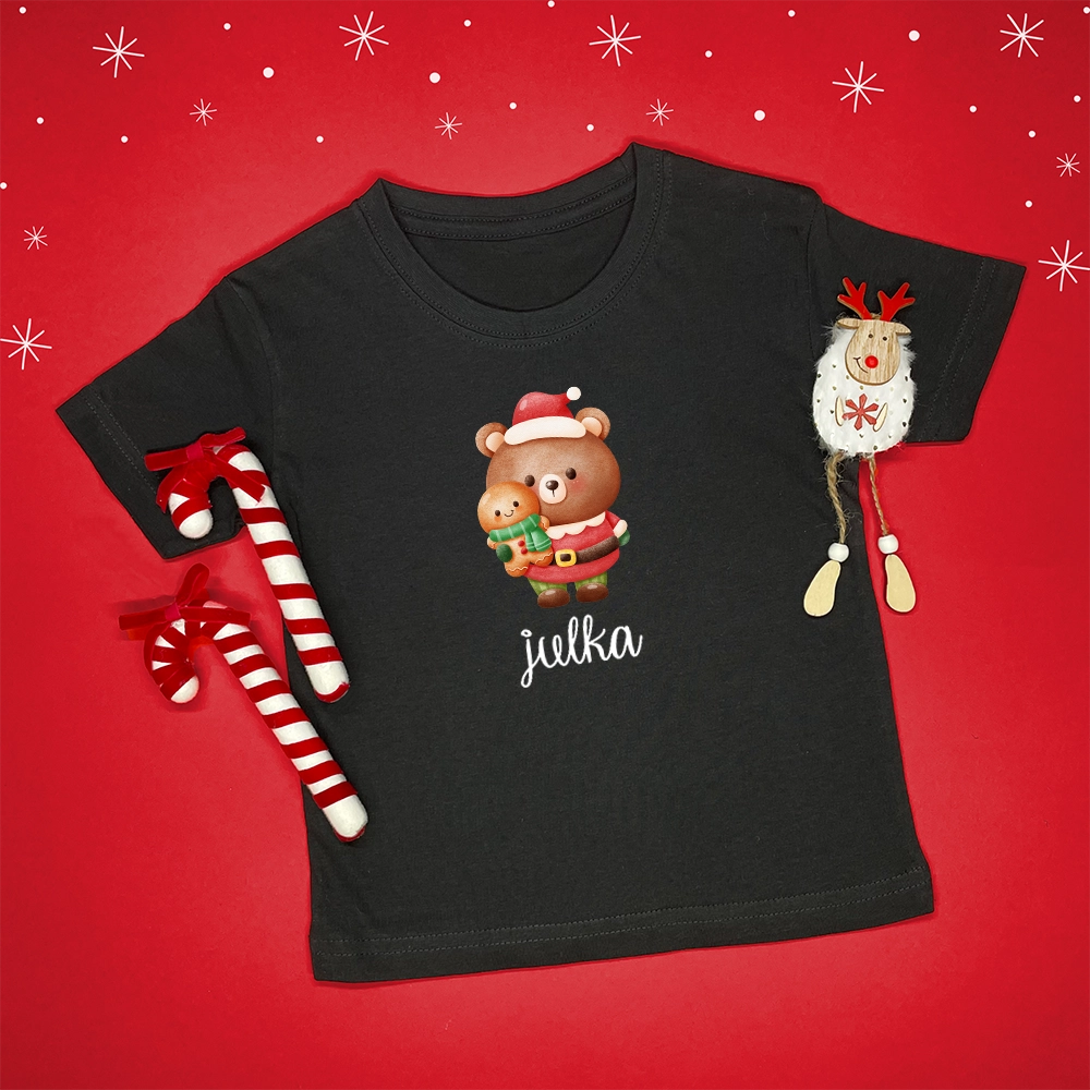 Do wyboru body dziecięce lub koszulka z kolorowym nadrukiem świątecznego misia i imieniem dziecka to nasza propozycja na świąteczną stylizację dla młodszych i starszych dzieci. T-shirt lub body świetnie sprawdzą się jako stylizacja do żłobka, przedszkola i szkoły, a także jako Mikołajkowy prezent :)