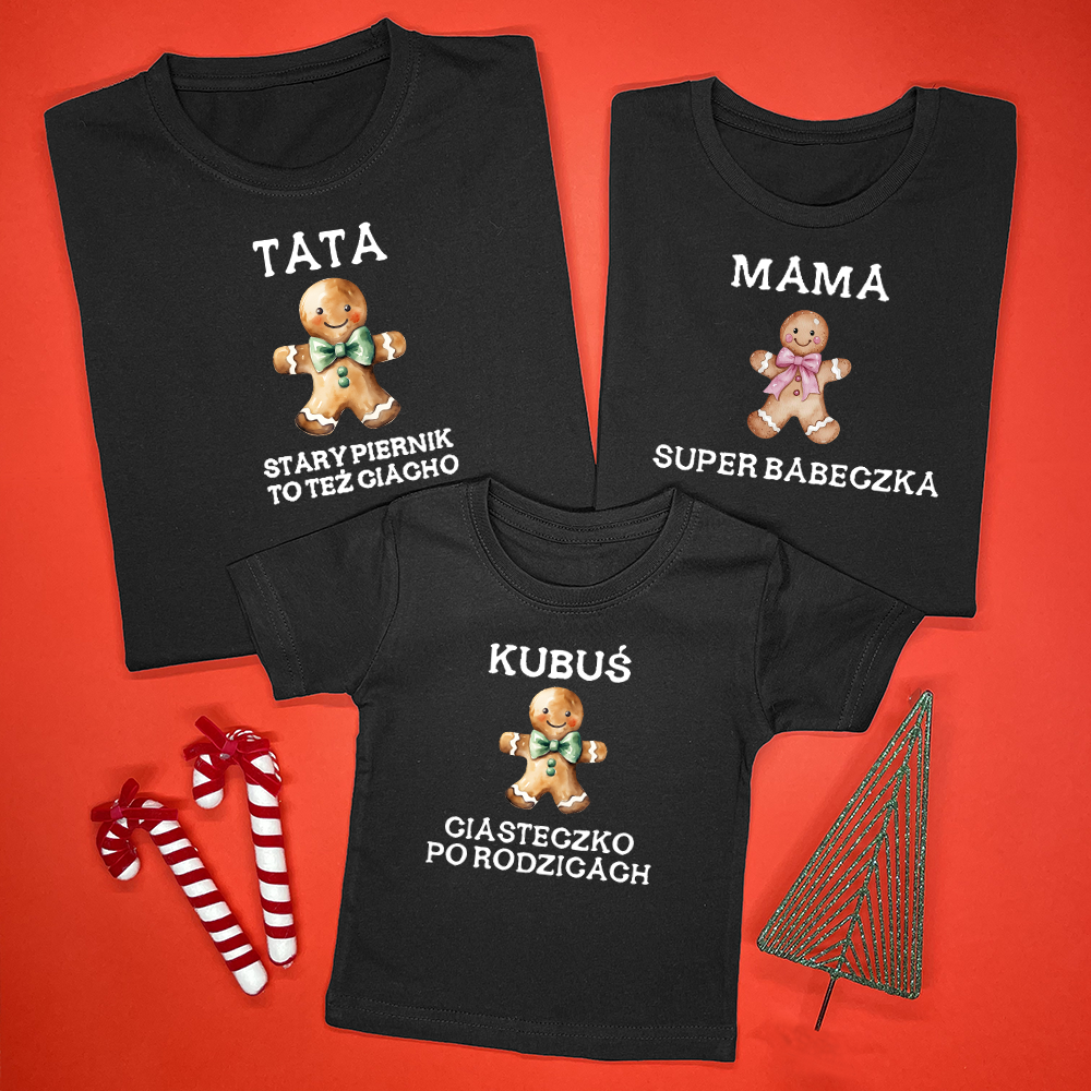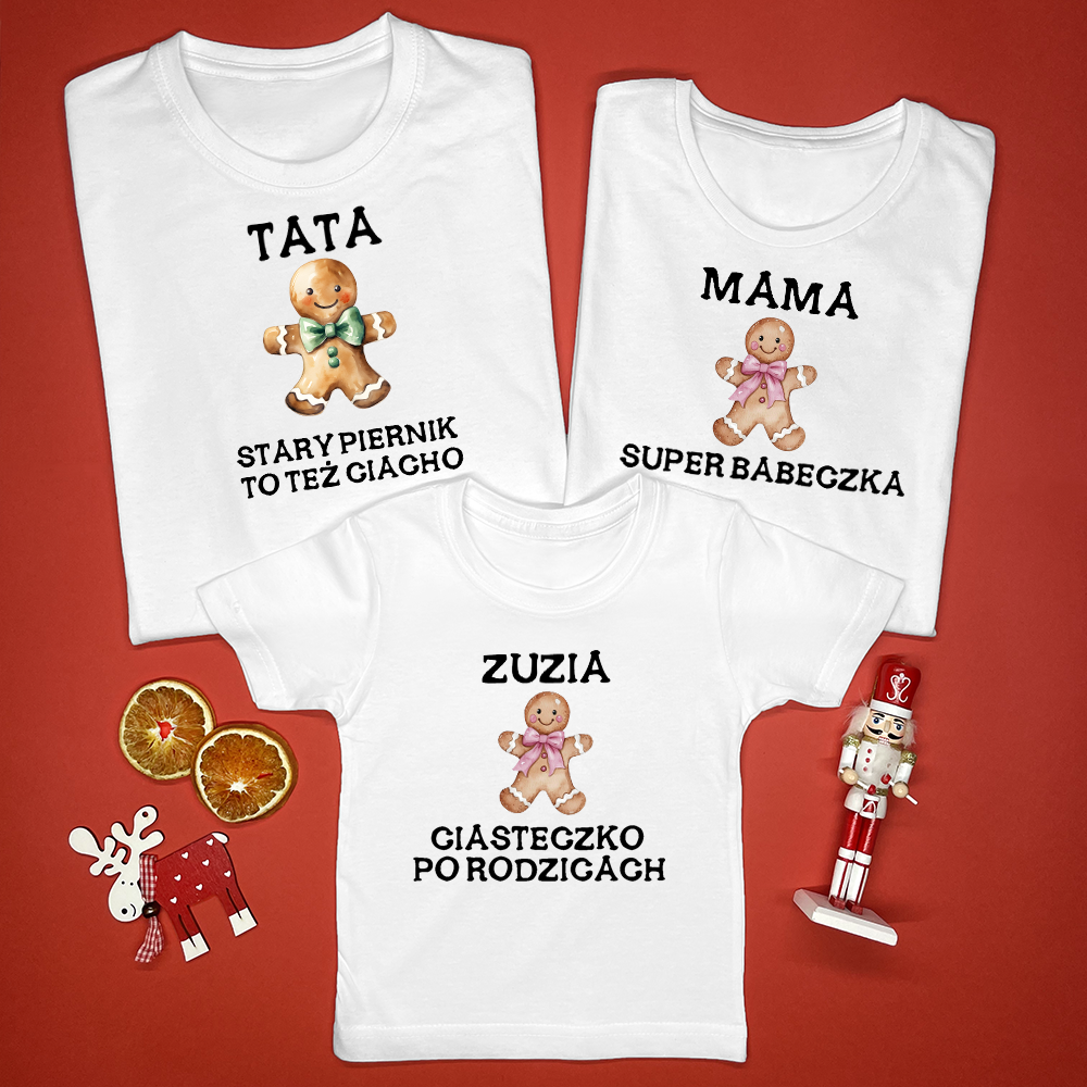Zestaw koszulek dla rodziny z nadrukiem świątecznych pierniczków