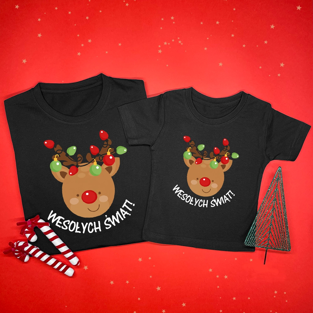 Renifer zestaw koszulek dla dorosłego i dziecka